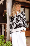 Sweater Flores con Medio Cierre - 70% Viscosa, 20% Poliamida, 10% Elastano